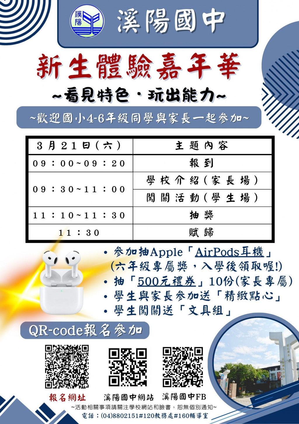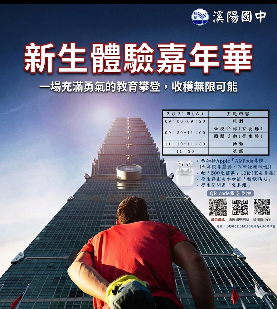 ~歡迎國小4-6年級同學與家長參加溪陽國中「新生體驗嘉年華」活動~